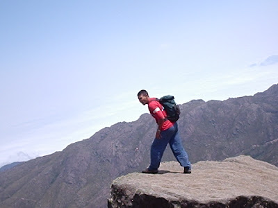 Observe bem as fissuras e os furos na parede rochosa. Não terminou, ao chegar no cume, surpresa!! o lado de lá está a alguns centímetros mais alto, é onde se encontra a caixa de aço do livro de cume, e entre você e o livro a um abismo a ser vencido.